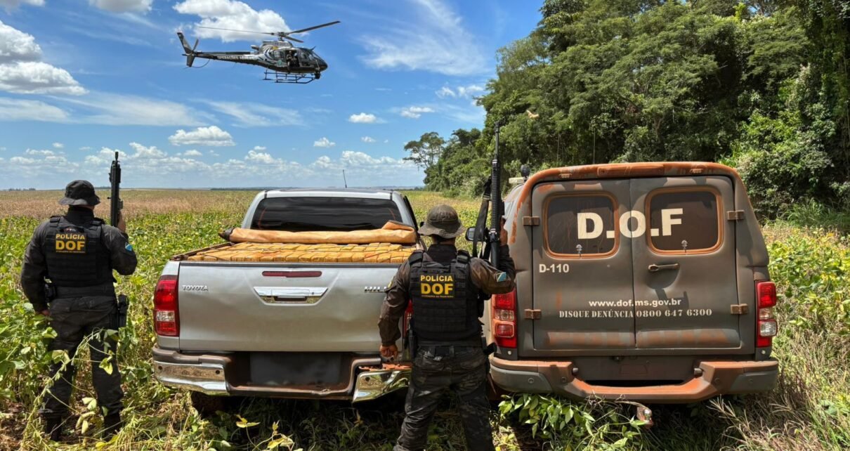 Policiais militares do DOF (Departamento de Operações de Fronteira) apreenderam, na tarde de terça-feira (10), uma Toyota Hilux carregada com 1.950 quilos de maconha. A ação, que contou com o apoio da aeronave Harpia, ocorreu em uma estrada vicinal conhecida como Balsa Velha, em Ponta Porã. A equipe realizava patrulhamento quando deu ordem de parada […]