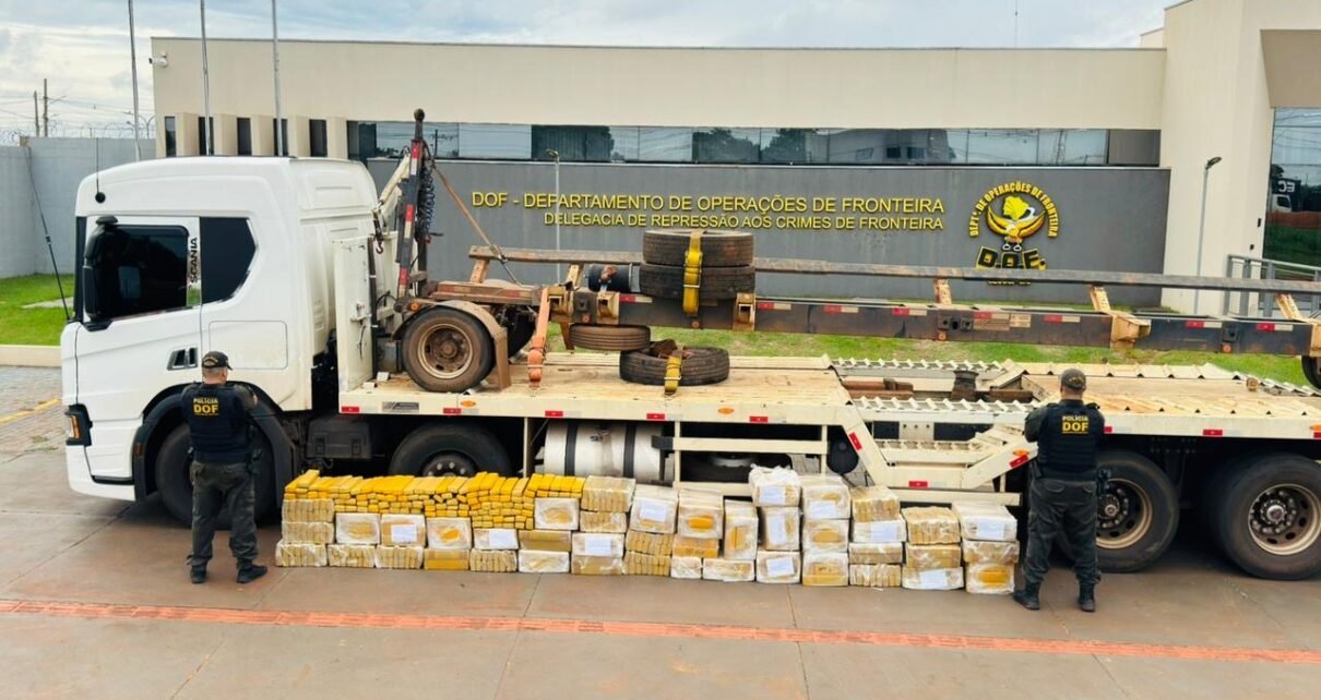 DOF apreende 1,2 tonelada de maconha em cabine de caminhão e prende dois homens em Ivinhema