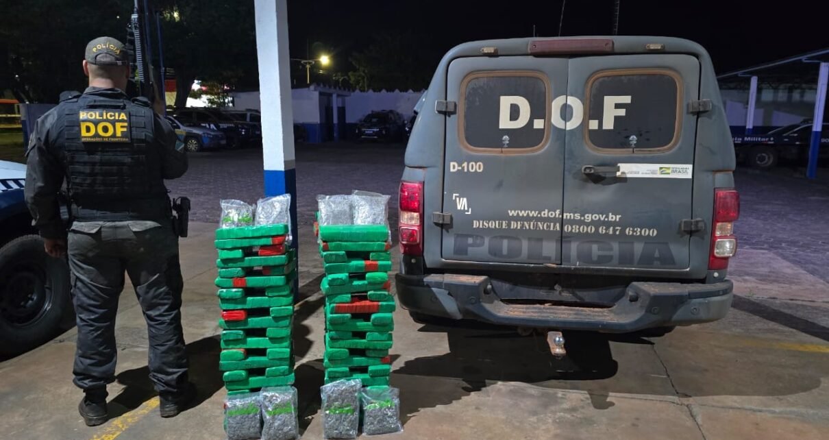 Policiais militares do DOF (Departamento de Operações de Fronteira) apreenderam, na madrugada desta quarta-feira (26), na MS-386, em Amambai, 77 quilos de maconha e 1,6 quilo de skunk que haviam sido abandonados às margens da rodovia. Os militares faziam patrulhamento pela rodovia, na zona rural do município, quando visualizaram um volume próximo à vegetação. Durante […]