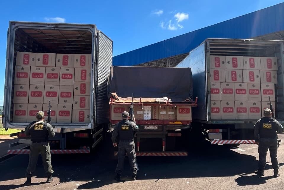 DOF apreende três caminhões carregados com cigarros contrabandeados avaliados em quase R$ 3 milhões