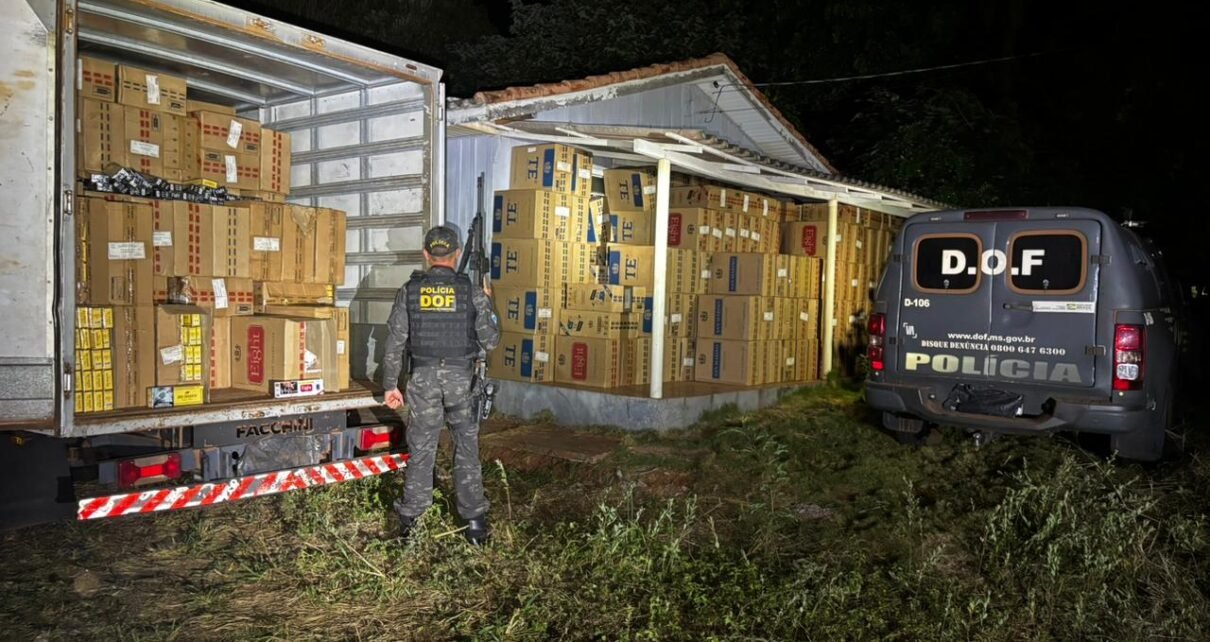 Policiais militares do DOF (Departamento de Operações de Fronteira) apreenderam, na noite deste domingo (30), em Mundo Novo, 70 mil pacotes de cigarros contrabandeados do Paraguai. Os produtos estavam armazenados no interior de uma residência e em um caminhão-baú Iveco, roubado no Estado de Minas Gerais. A equipe realizava patrulhamento pelo perímetro urbano do município […]