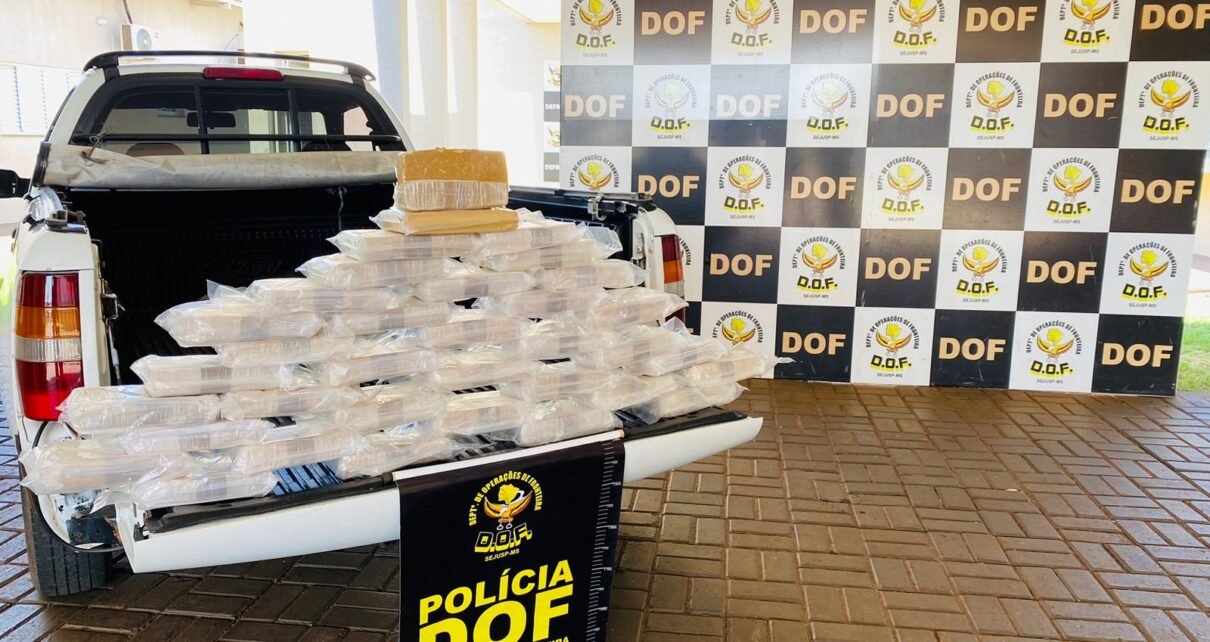 Policiais militares do Departamento de Operações de Fronteira (DOF) apreenderam, na manhã de hoje (28) 36,2 quilos de pasta base de cocaína e 1,1 quilo de cloridrato de cocaína. A droga, avaliada em mais de 2,8 milhões de reais, teria como destino o Estado do Paraná.
