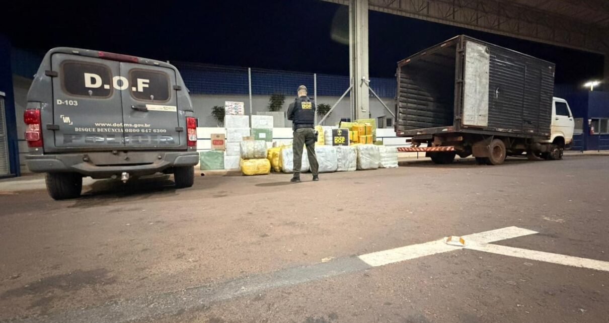Policiais militares do DOF (Departamento de Operações de Fronteira) apreenderam, nesta quinta-feira (29), um caminhão VW/7.110 carregado com cigarros e mercadorias de origem estrangeira. A ação ocorreu em uma estrada vicinal entre os municípios de Japorã e Mundo Novo.
