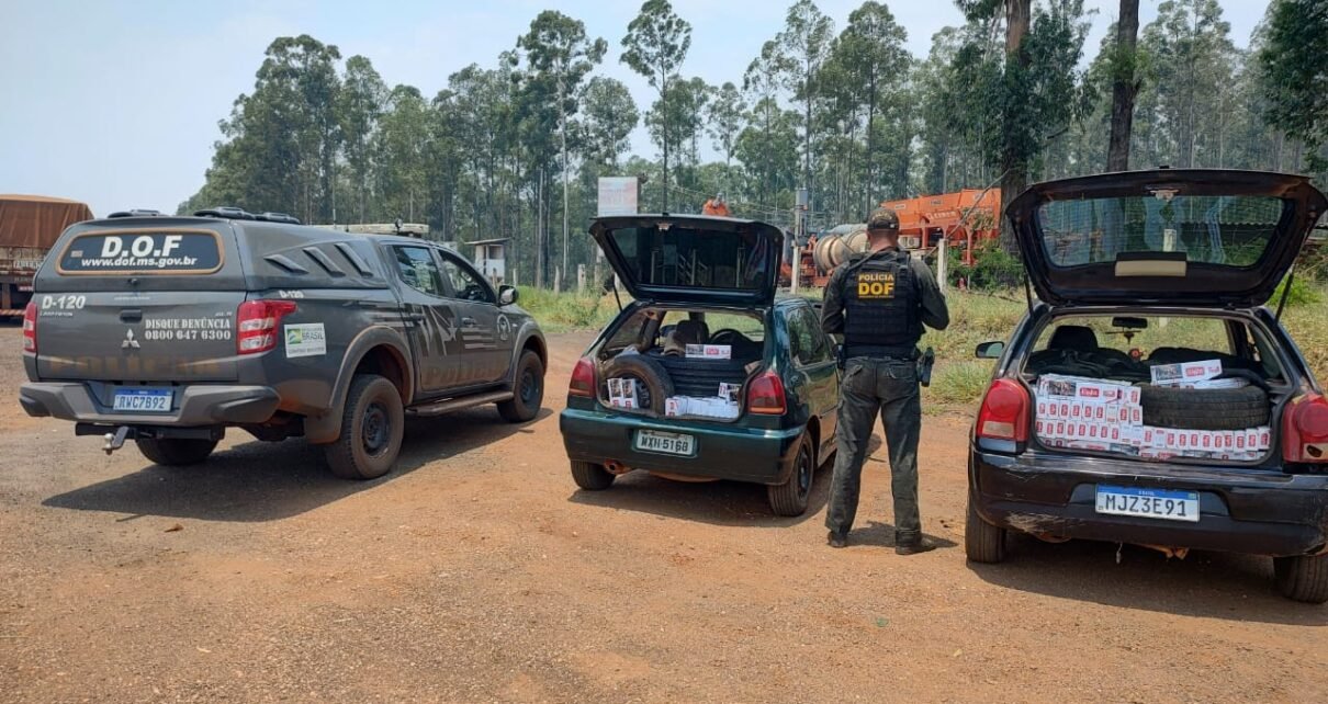 O DOF (Departamento de Operações de Fronteira) apreendeu nesta terça-feira (14) dois veículos carregados com pneus e cigarros contrabandeados do Paraguai. A ação aconteceu na MS-164 em Ponta Porã. Dois homens de 22 e 35 anos que conduziam os carros foram detidos.