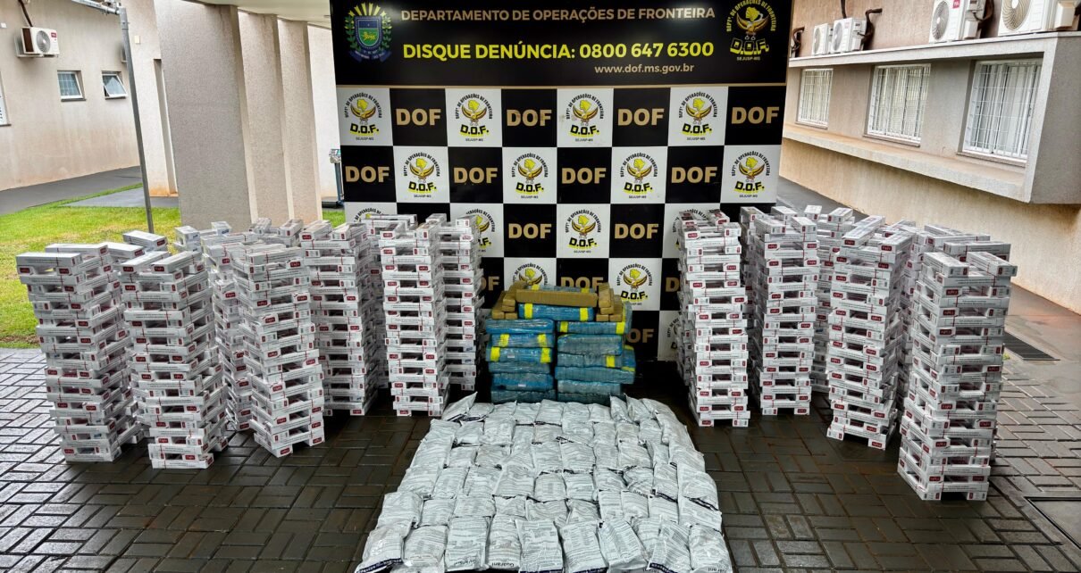 Policiais militares do DOF (Departamento de Operações de Fronteira) apreenderam neste sábado (30), em Maracaju, um veículo carregado com maconha, agrotóxicos e cigarros contrabandeados do Paraguai. Dois homens de 24 e 35 anos foram presos em flagrante.