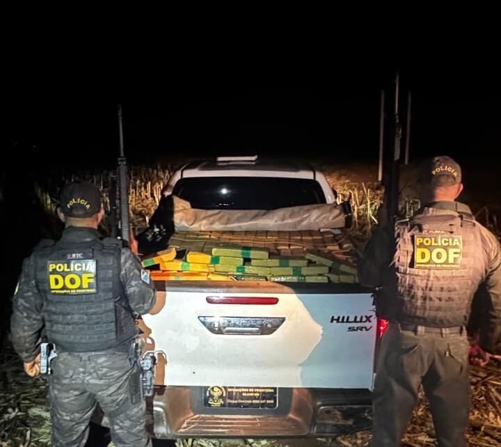 Policiais militares do DOF (Departamento de Operações de Fronteira) apreenderam na noite desta quinta-feira (21), em Dourados, mais de 2.100 quilos de maconha, que eram transportados em uma caminhonete Toyota Hilux, furtada no Estado do Paraná. Na ação, dois homens de 22 e 27 anos foram presos.