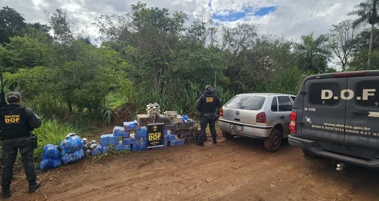 Policiais militares do DOF (Departamento de Operações de Fronteira) apreenderam nesta quarta-feira (16), em Amambai, mais de 500 quilos de drogas, que estavam em meio a uma mata. Um veículo VW Gol, que estava com alguns tabletes de maconha, próximo aos entorpecentes, também foi apreendido. Na ação, ninguém foi preso.