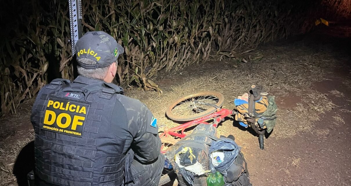 Os policiais faziam patrulhamento na rodovia, que liga as cidades de Dourados e Laguna Carapã, quando o ciclista, ao perceber a presença da viatura, abandonou a bicicleta carregada e fugiu a pé em meio a uma plantação às margens da rodovia.