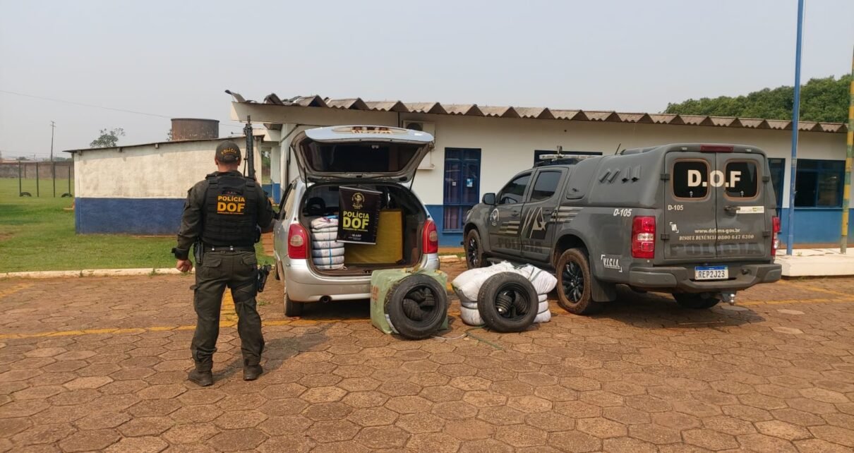 Policiais militares do DOF (Departamento de Operações de Fronteira) apreenderam nesta quinta-feira (16), na MS-164 em Ponta Porã, quase R$ 100 mil em óculos, peças de roupas e pneus de origem estrangeira que seriam levados para Campo Grande. Na ação duas pessoas de 21 e 24 anos foram detidas.