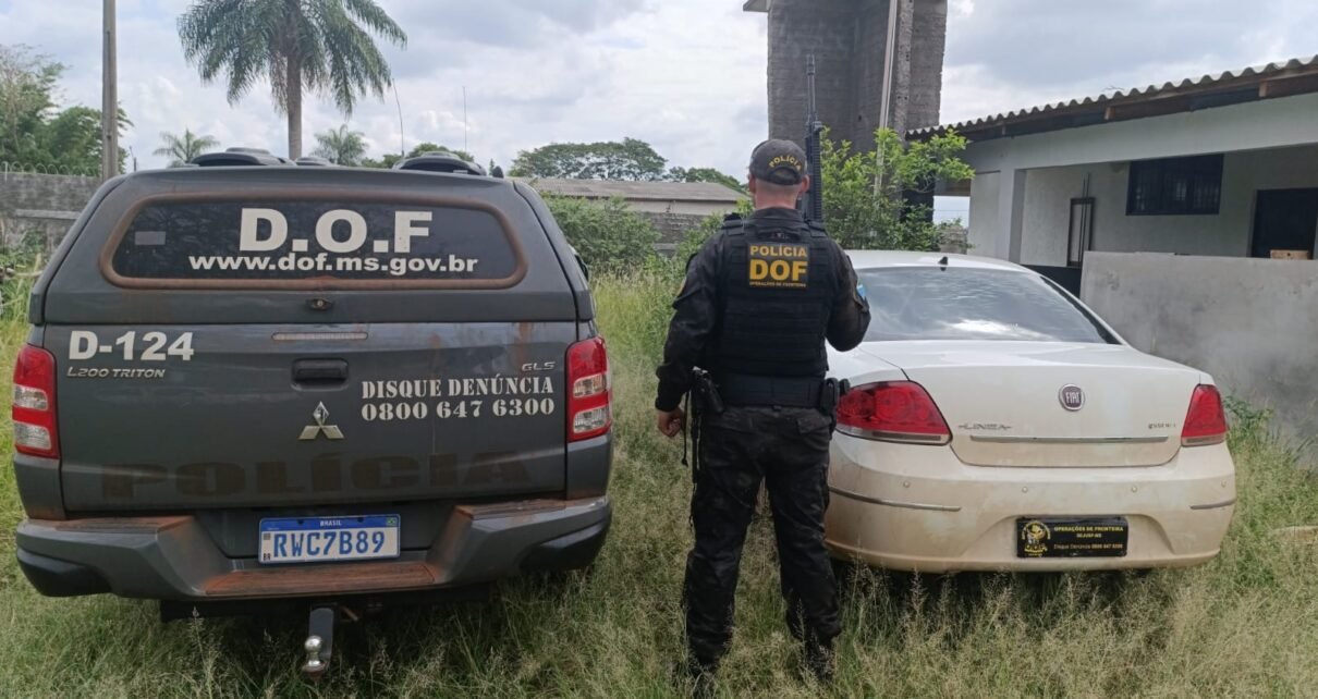 Policiais militares do DOF (Departamento de Operações de Fronteira) apreenderam neste sábado (19), em Tacuru, um Fiat Linea com adulteração de sinal identificador de veículo automotor. O carro estava abandonado no pátio de um posto de combustível. Na ação ninguém foi preso.
