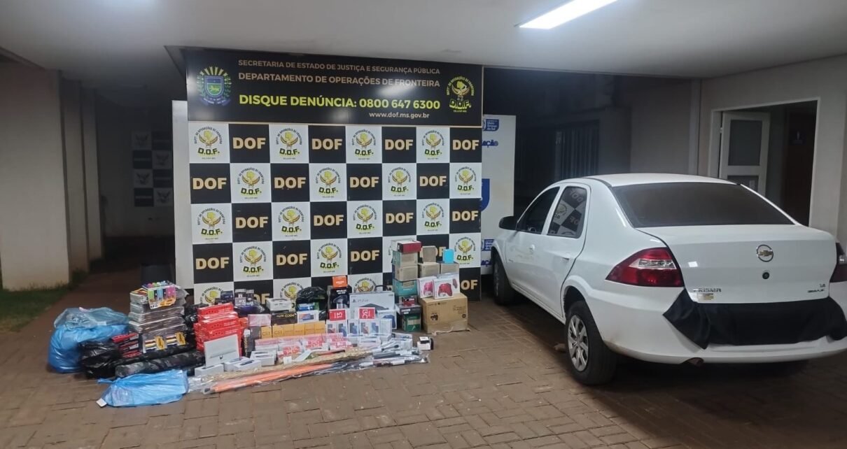 Já na BR-267, um Fiat Uno foi apreendido com 1.250 pacotes de cigarros contrabandeados do Paraguai. O veículo estava abandonado próximo a uma plantação de milho. Buscas foram feitas, mas nenhum suspeito localizado.