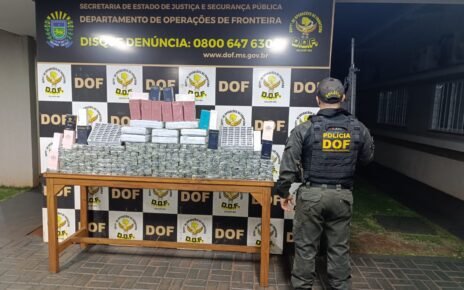 Uma ação conjunta entre policiais militares do DOF (Departamento de Operações de Fronteira) e policiais da CGPA (Coordenadoria-Geral de Policiamento Aéreo) resultou na apreensão de mais de uma tonelada de maconha, que era transportada em um Fiat Uno, conduzido por um adolescente de 17 anos. A ocorrência foi registrada nesta quinta-feira (27), em Maracaju.