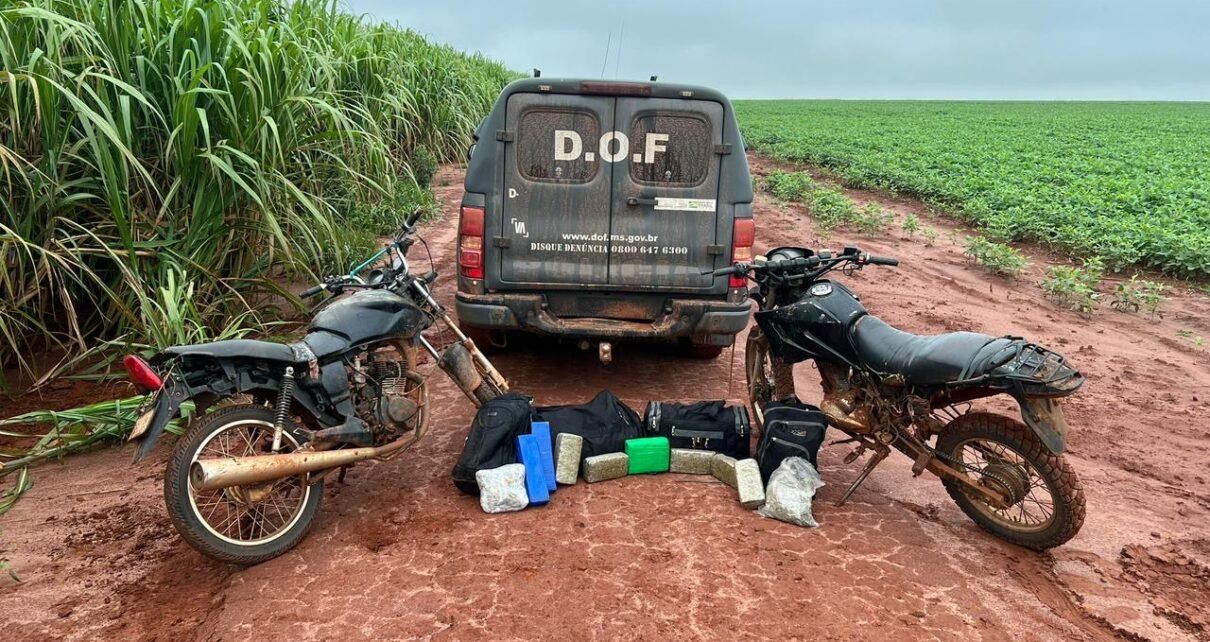 Policiais militares do DOF (Departamento de Operações de Fronteira) prenderam, neste sábado (13), na BR-487, em Itaquiraí, dois homens de 18 e 28 anos com 42 quilos de skunk e 10 quilos de maconha, que eram transportados em duas motos paraguaias.
