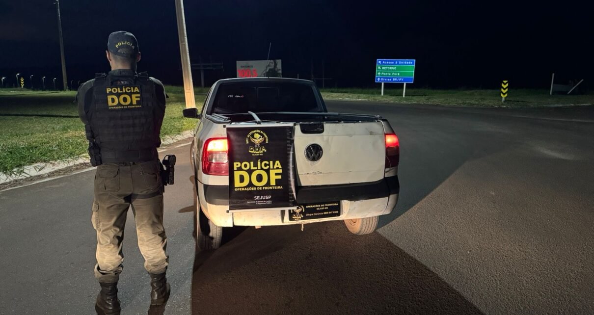 Policiais militares do DOF (Departamento de Operações de Fronteira) recuperaram neste domingo (22), em Ponta Porã, um veículo VW Saveiro, roubado no Estado de Goiás. Um homem de 23 anos foi preso em flagrante.