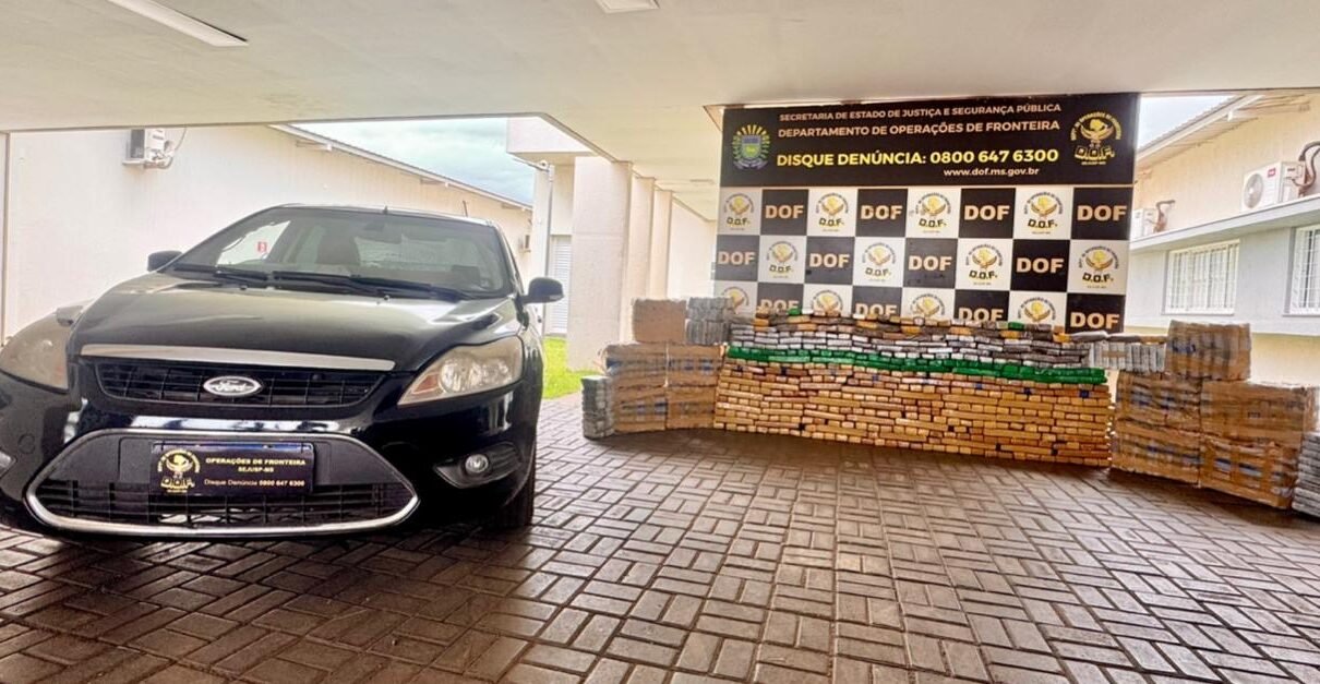 Policiais militares do DOF (Departamento de Operações de Fronteira) prenderam, nesta segunda-feira (29), em Dourados, um homem de 42 anos que possuía mandado de prisão em aberto e transportava 721 quilos de maconha em um veículo Ford Focus, roubado no Estado de São Paulo.