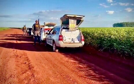Policiais militares do DOF (Departamento de Operações de Fronteira) recuperaram, na madrugada deste segunda-feira (2) um caminhão trator Scania acoplado a um semirreboque carregado com 47.500 pacotes de cigarros contrabandeados do Paraguai.