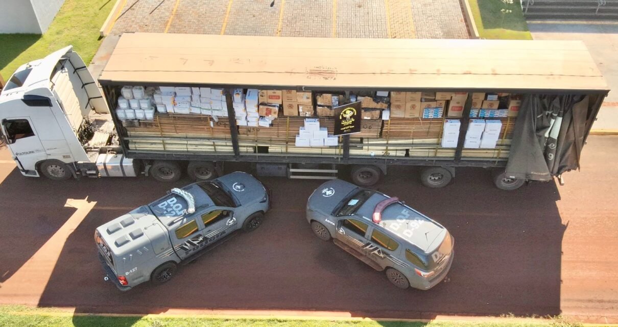 Policiais militares do DOF (Departamento de Operações de Fronteira) apreenderam, nesta terça-feira (14), na BR-267, em Nova Alvorada do Sul, 10 mil pacotes de cigarros contrabandeados do Paraguai, 1.350 quilos de agrotóxicos acondicionados em sacos e outros 400 litros do mesmo produto em galões. Os materiais ilícitos eram transportados em uma carreta carregada com madeira. […]
