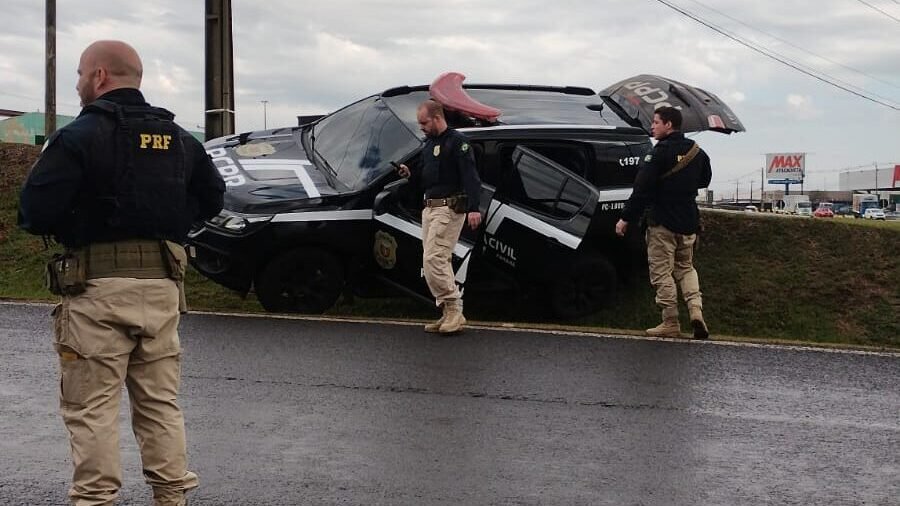 De acordo com o delegado, o indivíduo era um policial civil que adulterou a viatura. Ele foi abordado por agentes da Polícia Rodoviária Federal (PRF) após constatarem que o veículo estava com o pneu furado. Contudo, o motorista não obedeceu à ordem de parada e tentou fugir.