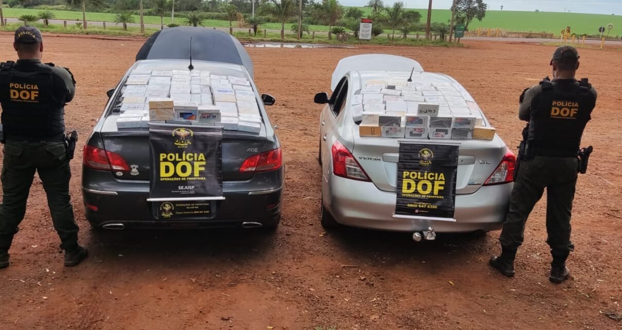 Os militares realizavam um bloqueio policial para fiscalização na rodovia MS-162, quando deram a ordem de parada aos condutores de um Peugeot cinza e um Nissan Versa prata. Durante as vistorias nos veículos, os policiais localizaram a mercadoria em compartimentos ocultos nos bandos traseiros. Os produtos ilegais tinham como destino o comércio em Campo Grande.
