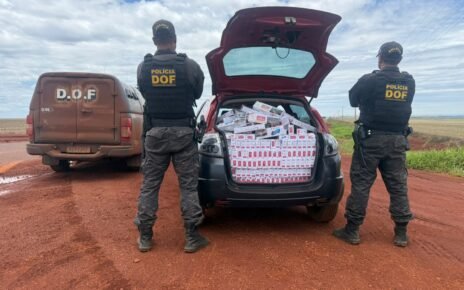 Policiais militares do DOF (Departamento de Operações de Fronteira) apreenderam, na tarde de sexta-feira (8) um Renault Sandero branco carregado com 200 pacotes de cigarros adquiridos de forma ilegal no Paraguai.