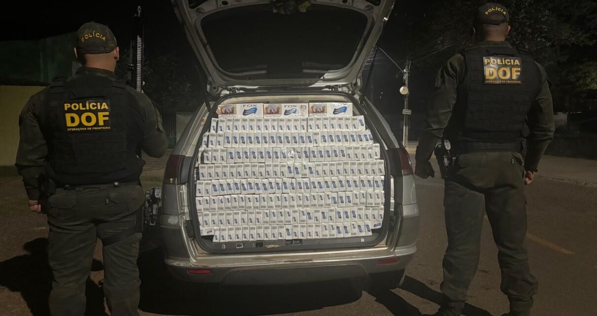 Policiais militares do DOF (Departamento de Operações de Fronteira) apreenderam, na noite desta terça-feira (23), um veículo Fiat Palio carregado com 1.500 pacotes de cigarros de origem estrangeira.