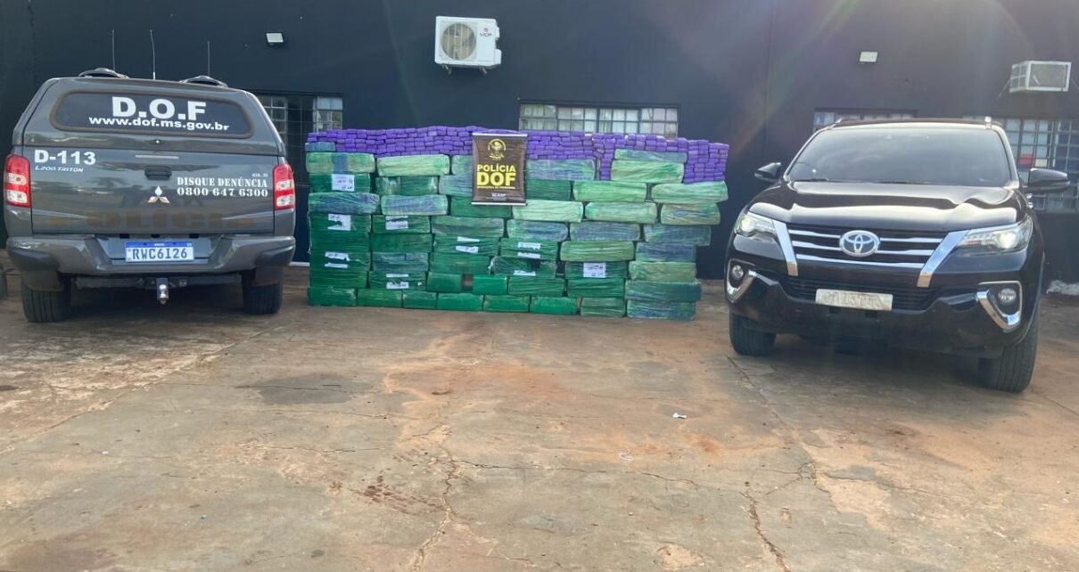 Policiais militares do Departamento de Operações de Fronteira (DOF) apreenderam, na madrugada desta terça-feira (27), na rodovia MS-386 um veículo Toyota SW4 de cor preta carregado com 2.020 quilos de maconha distribuídos em 51 fardos.