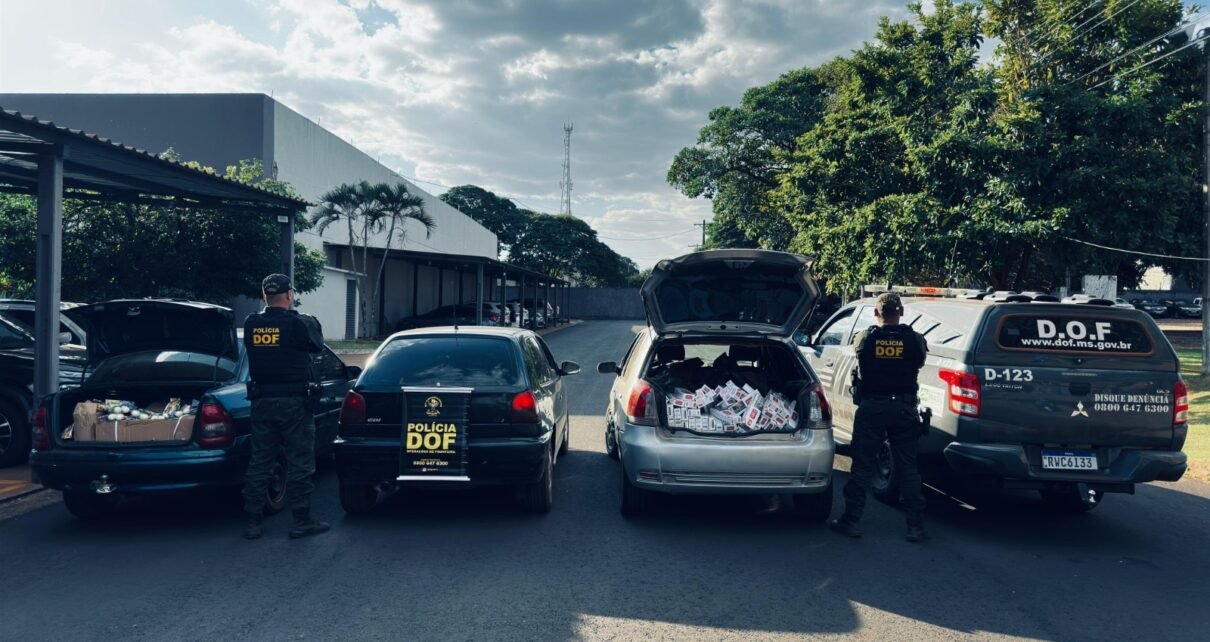 Policiais militares do DOF (Departamento de Operações de Fronteira) apreenderam, nesta quarta-feira (3), cinco veículos carregados com cigarros e brinquedos adquiridos no Paraguai, sem a documentação legal para circulação e comércio no Brasil.