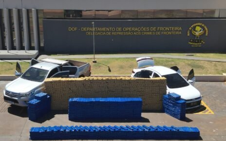 Policiais Militares do DOF (Departamento de Operações de Fronteira) apreenderam na madrugada desta terça-feira (23), dois veículos carregados com 76 pneus; 250 pacotes de cigarros; três prensas de roupas; e, um fardo com câmaras de ar para motocicleta. O contrabando e o descaminho tinham como destino final a capital sul-matogrossense.